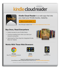 The new technology enables eReader lovers to access their entire library from any device, anywhere in the world, with no new downloads or installations needed. Kindle Cloud Reader syncs with your existing Kindle library and bookmarks, and is at present available for Safari on iPad, Safari on Mac desktops and Google Chrome.