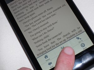 It’s very similar to using the iPad, which I wrote about here a few weeks ago. Downloading the Kindle app from the Android Market to the Dell Streak we borrowed, it was easy enough to sync it with my Amazon library and download a book. There’s very little difference between how the Kindle app works on Android compared to the equivalent on the iPad. You can set the background colour to black (with white text) or sepia or white (with black text). I find the sepia setting takes a little of the brightness away and makes it easier to read. You can also choose a type size that suits you. However unlike on the iPad, you can shop directly on the Kindle Store from within the app. On an iPad you have to switch to your web browser to purchase a book.