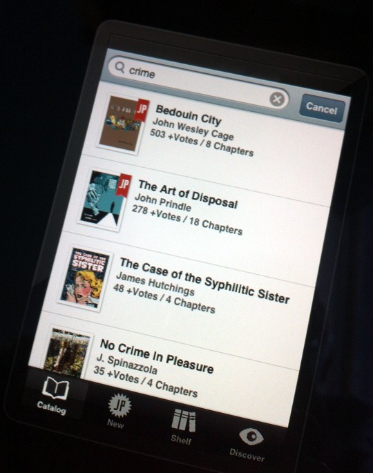 In fact, the site offers fiction across the genres, with about 30 crime stories on the go at the moment. You don’t need a shilling here – chapters are free and the authors are expected to upload a new one every month in order to get paid. If you’ve registered and put a particular ‘book’ on your ‘shelf’ you’ll receive an email notifying you whenever a new instalment has arrived. Or, you could download the JukePop app to your iPhone or Android device, in which case you’ll get a little bleep and a notification whenever a chapter has arrived for a book you’ve shelved.