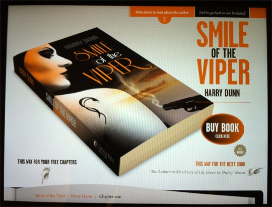 Tap a book from the virtual bookshelf presented, and you’re a swipe away from sampling its content. With some books you get a bit more than with other, depending on the author’s style and how long their chapters are! If you decide to buy, you poke a button on the screen and you come out of the app into the iBooks bookstore where you can purchase the book for your device.
