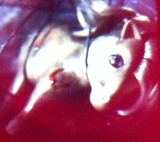 The first slide is this strange shot of a My Little Pony with what looks like a bloody fingerprint on it, and some wire round its neck. Dirty and damaged toys often suggest violence towards children…