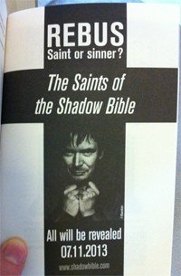 Earlier this month the paperback version of Ian Rankin’s Standing in Another Man’s Grave came out and it saw the return of one of Scotland’s most famous crime fiction detectives: John Rebus. His creator had taken a break from JR and retired him off, preferring to focus on the newer Edinburgh detective Malcolm Fox. But he couldn’t leave him alone for long, and that paperback of Standing in Another Man’s Grave has now alerted us to the fact that another Rebus novel is on its way – there’s an ad in the back of the book for Saints of the Shadow Bible…