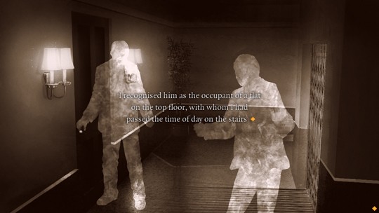 Whereas the film version – The 39 Steps – introduced both numerals to the title and a love interest, this app clings more finely to Buchan’s tale. The developer has used a variety of means to tell the story and it’s not like sitting reading the novel. Voice actors deliver the dialogue in radio play-style, sometimes with ghostly characters on screen. There are bits for you to read too. A world on the brink of war is conveyed by newspapers found here and there on the journey, click-and-discover chunks of information, and the dialogue.