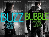In the second, Buzz, there is a murder mystery, a PR company with a very unusual and not very pleasant way of working crafted by their ex-military intelligence. There is also an internet stalker and a secret chat-forum for law-enforcement officers, that quickly turns on one of the main characters. In the third book, Bubble, there is a secret security deposit box containing disturbing evidence about someone very close to one of the main characters. The book also features a company specialising on harvesting and storing customer data. In the middle of all this is the Game Master himself.