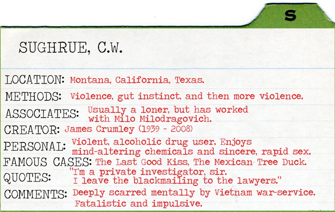 I love the list, but I wanted to add a more recent one: Conway Sax from the novel Purgatory Chasm by Steve Ulfelder. A part-time mechanic, part-time PI, Sax does “favors” for fellow recovering alcoholics. This character is fresh take on the classic noir private dick. There are three Sax books available thus far: Purgatory Chasm, The Whole Lie, and Shotgun Lullaby (in that order.) Cheers.