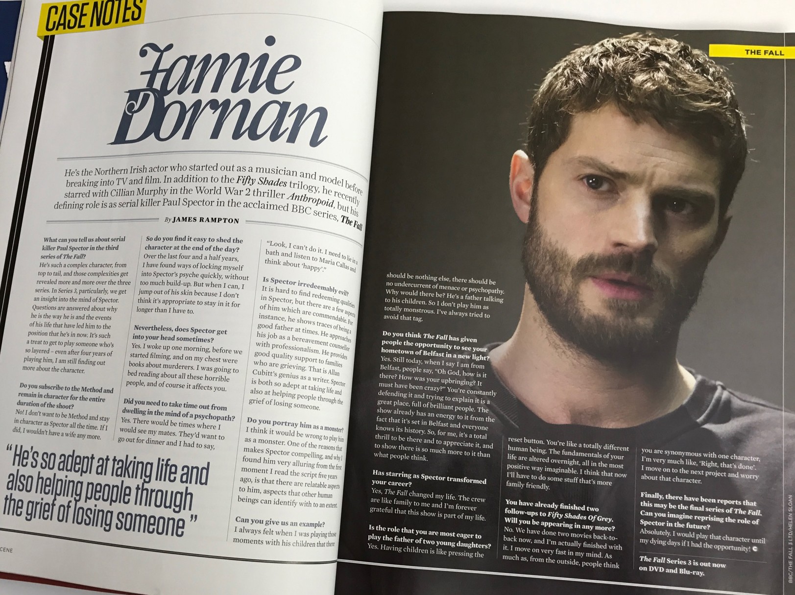 Other favourite articles for us include two great interviews. One is with Lee Child, creator of Jack Reacher, and the other with Jamie Dornan, who played Paul Spector in the BBC’s excellent TV series The Fall. Though it got off to a slow start, episodes five and six were mind blowing largely thanks to the actor’s performance, when it aired during September and October 2016. The magazine includes a spread looking at the various meals that were served in the series Hannibal, in a very dip-able, fun magazine-y type article that Crime Scene could use more of.