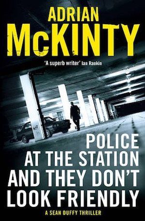 Written by Adrian McKinty — Police at the Station and They Don’t Look Friendly is the sixth book in Adrian McKinty’s Sean Duffy series. It opens with RUC detective Duffy being led at gunpoint deep into the woods by a small group of thugs. His life cooly flashes before his eyes. He thinks of his girlfriend, parents and little daughter, wanting her to be the last thing in his head before the big sleep.