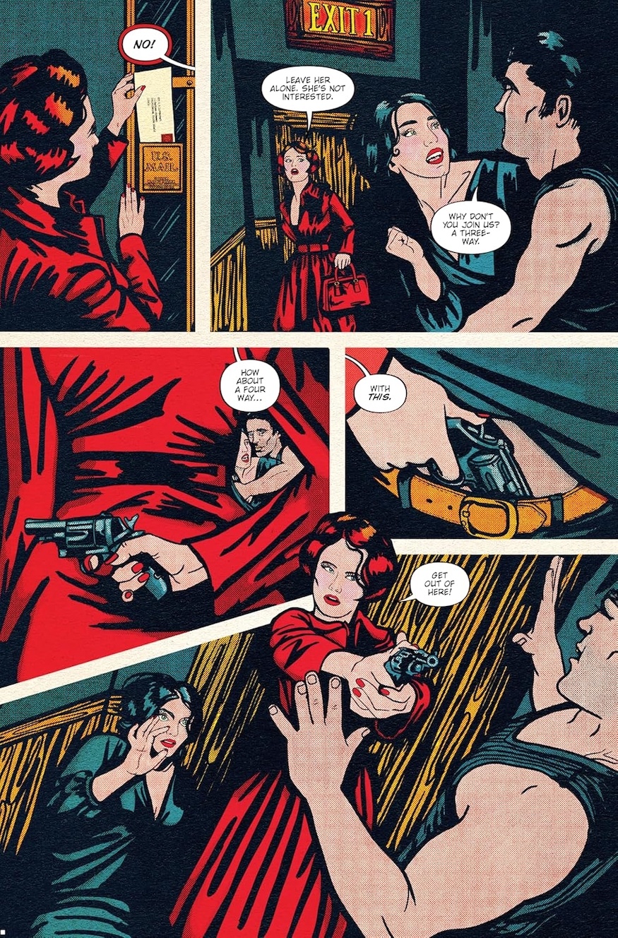 The hardback – with beautiful end papers, a cover by the artist Celina and with Cynthia von Buhler’s own artwork throughout – is full of creativity. Half-tone textures and heavy line work mimic the printing techniques of the 1920s and 30s. Meanwhile, rich, warm colour palettes and low lighting dial up both the mystery and the burlesque aspects. What lurks in the shadows could be pleasure or it could be horror…