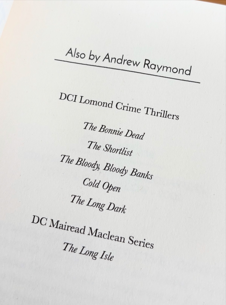 So, there’s plenty of new Tartan noir here to sink your teeth into come the end of March. And beyond that, Andrew Raymond has plans to launch a new series with a new detective later in the year. We’ll bring you news of The Long Isle featuring DC Mairead Maclean as soon as we have it.